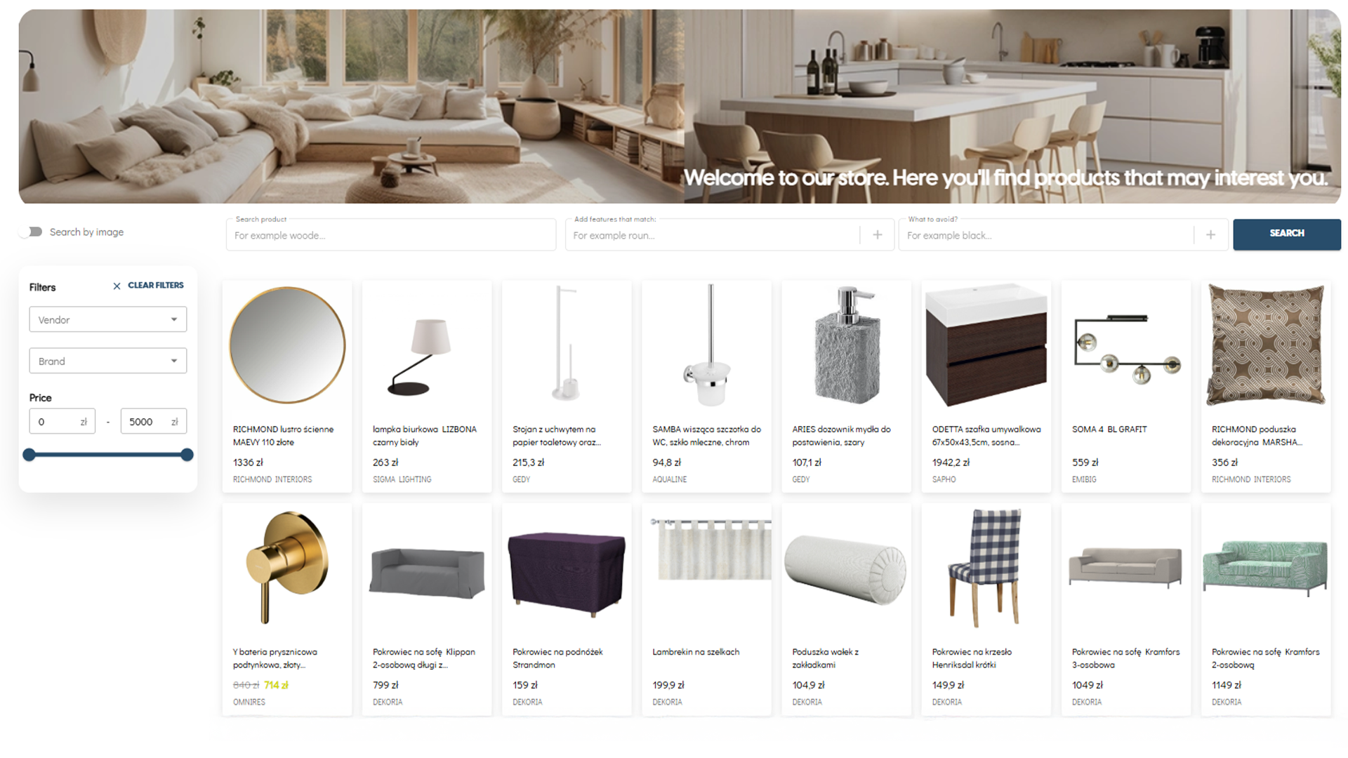 System automatycznie rozpoznaje oglądany produkt i wyszukuje jego odpowiedniki w naszym Marketplace, ułatwiając szybkie porównanie cen i parametrów.
